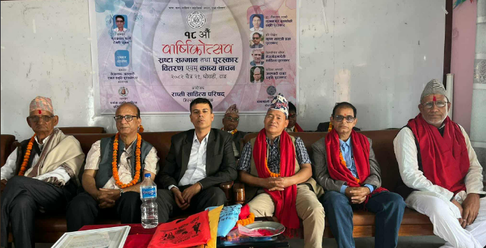 राप्ती साहित्य परिषद् जिल्ला शाखा दाङका अध्यक्ष यम रेग्मीको अध्यक्षता तथा भाषा आयोगका निवर्तमान सदस्य तथा वरिष्ठ साहित्यकार डा अमर गिरीको प्रमुख आतिथ्यता एवं राप्ती साहित्य परिषद् केन्द्रका सल्लाहकार पुरुषोत्तम खनालको विशिष्ट आतिथ्यमा भएको कार्यक्रममा यज्ञबहादुर बुढाथोकी स्मृति पुरस्कारबाट डा. टीकाराम उदासी, कृष्ण गायत्री प्रज्ञा पुरस्कारबाट हरि पोख्रेल, नेत्रमोहनादेवी साहित्य पुरस्कारकाबाट डिल्लीराज श्रीधर र वेदप्रसाद जयश्वरी रावत स्मृति पुरस्कारबाट खगेश्वर भण्डारी पुरस्कृत भएका हुन ।